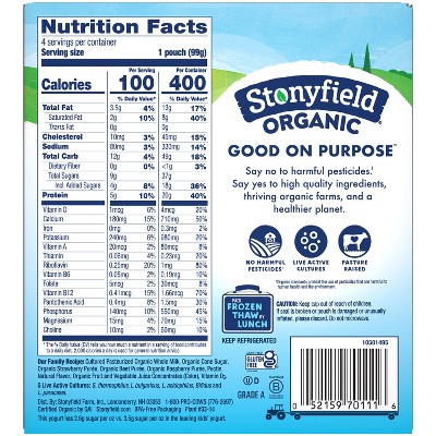 1 container 113g. Nutrition Label Nutrition Facts Serving Size 100 container Amount Per Serving Calories 80Calories from Fat 0. Stonyfield Organic Whole Milk Strawberry Beet Berry Yogurt Pouches 4.